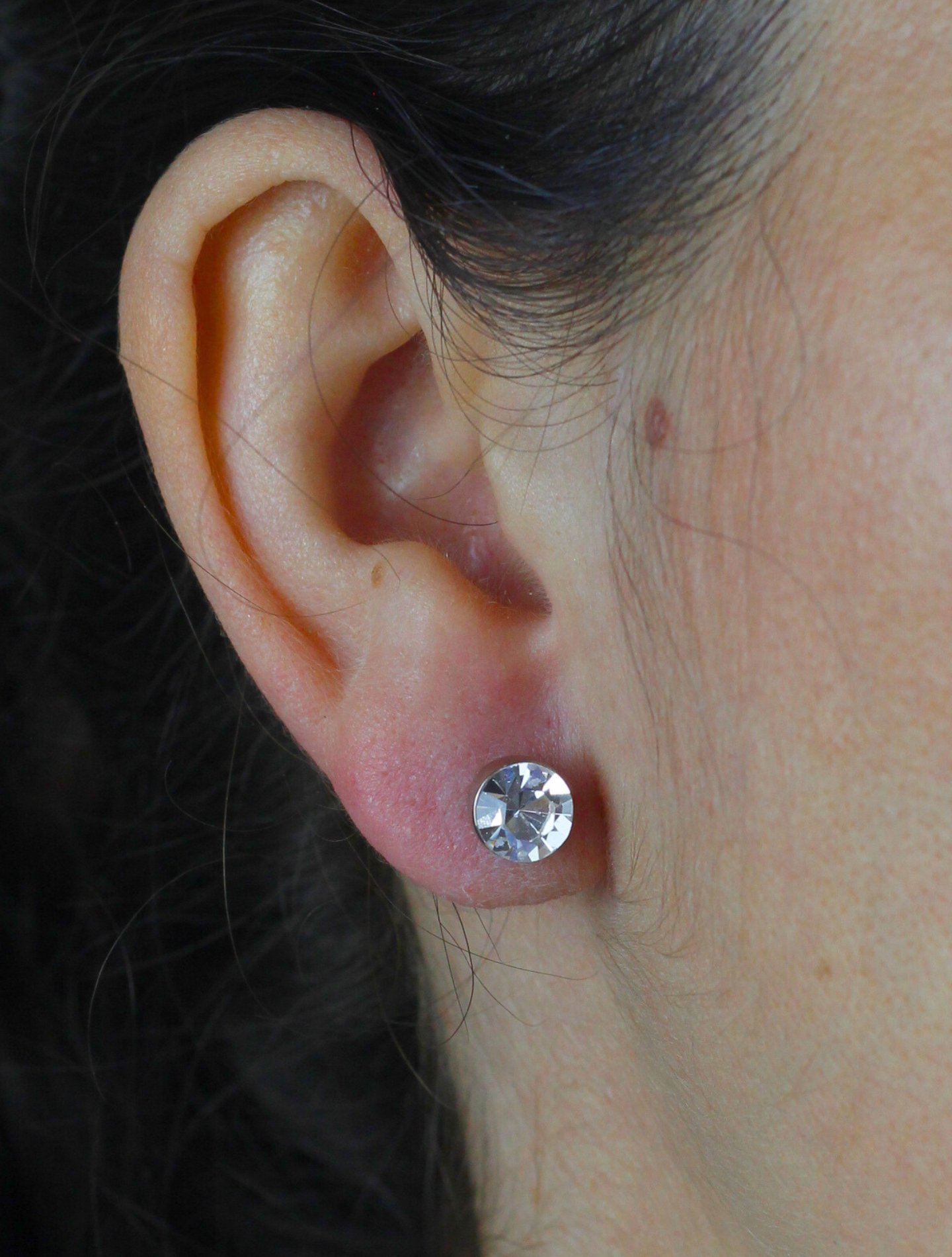 Brinco Lia Ponto de Luz banhado a ródio branco com cristal de brilho intenso. Hipoalergênico e versátil, une simplicidade e sofisticação para qualquer ocasião.