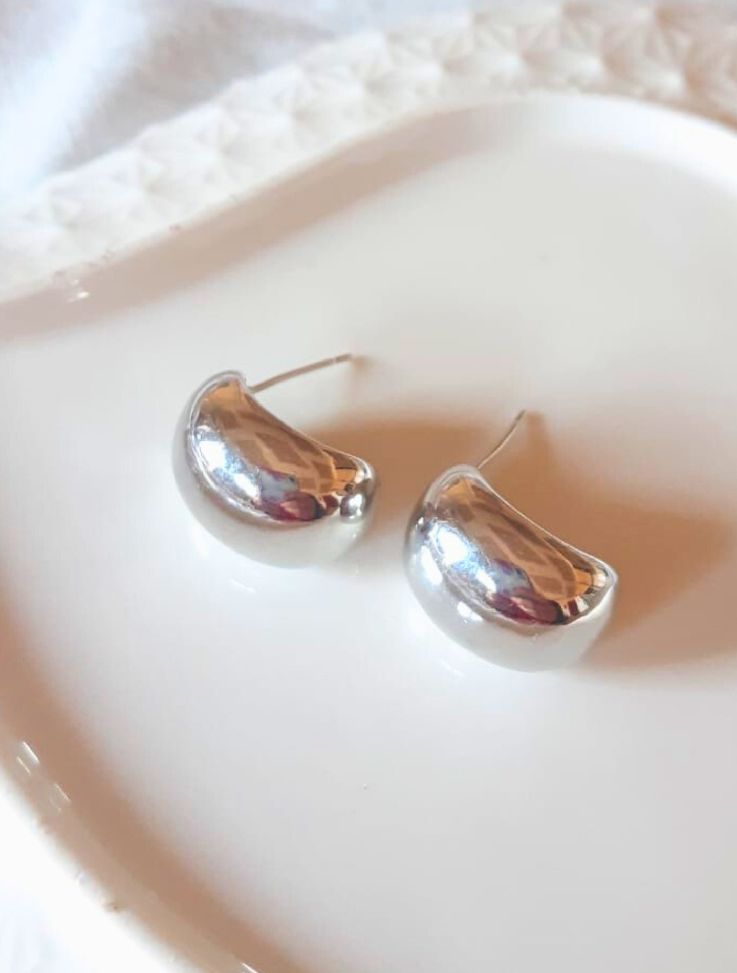 Brinco Suzanna Retangular Liso banhado a ródio branco, com linhas retas e acabamento polido que refletem a luz com sofisticação. Hipoalergênico e confortável, combina modernidade minimalista com presença marcante.