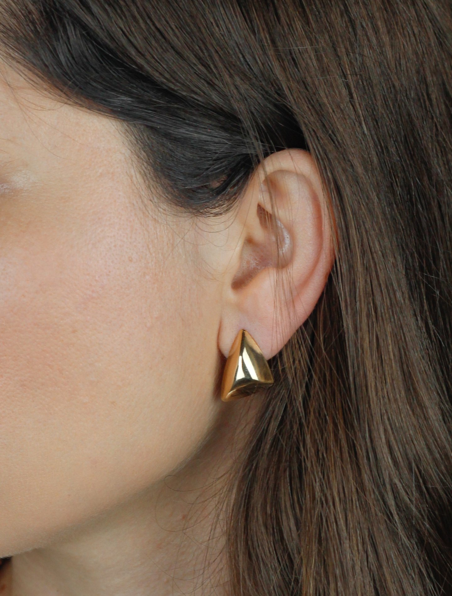 Com linhas orgânicas e design escultural, o Brinco Suzanna Triângulo Irregular combina modernidade e elegância em uma peça marcante.