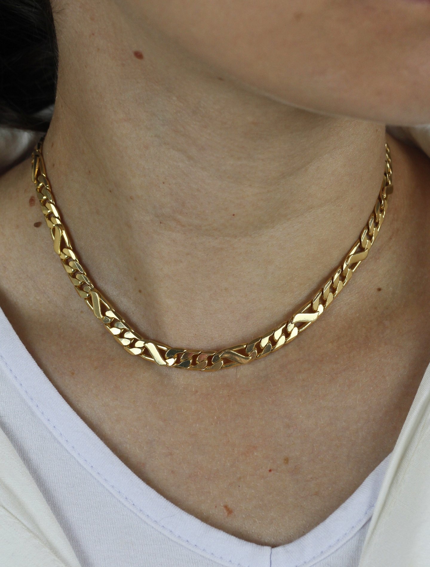 Colar Choker Suzanna Corrente Grumet 3 por 1 banhado a ouro 18K, com design trançado que valoriza o colo com elegância. Hipoalergênico e confortável, combina modernidade e sofisticação em qualquer look.