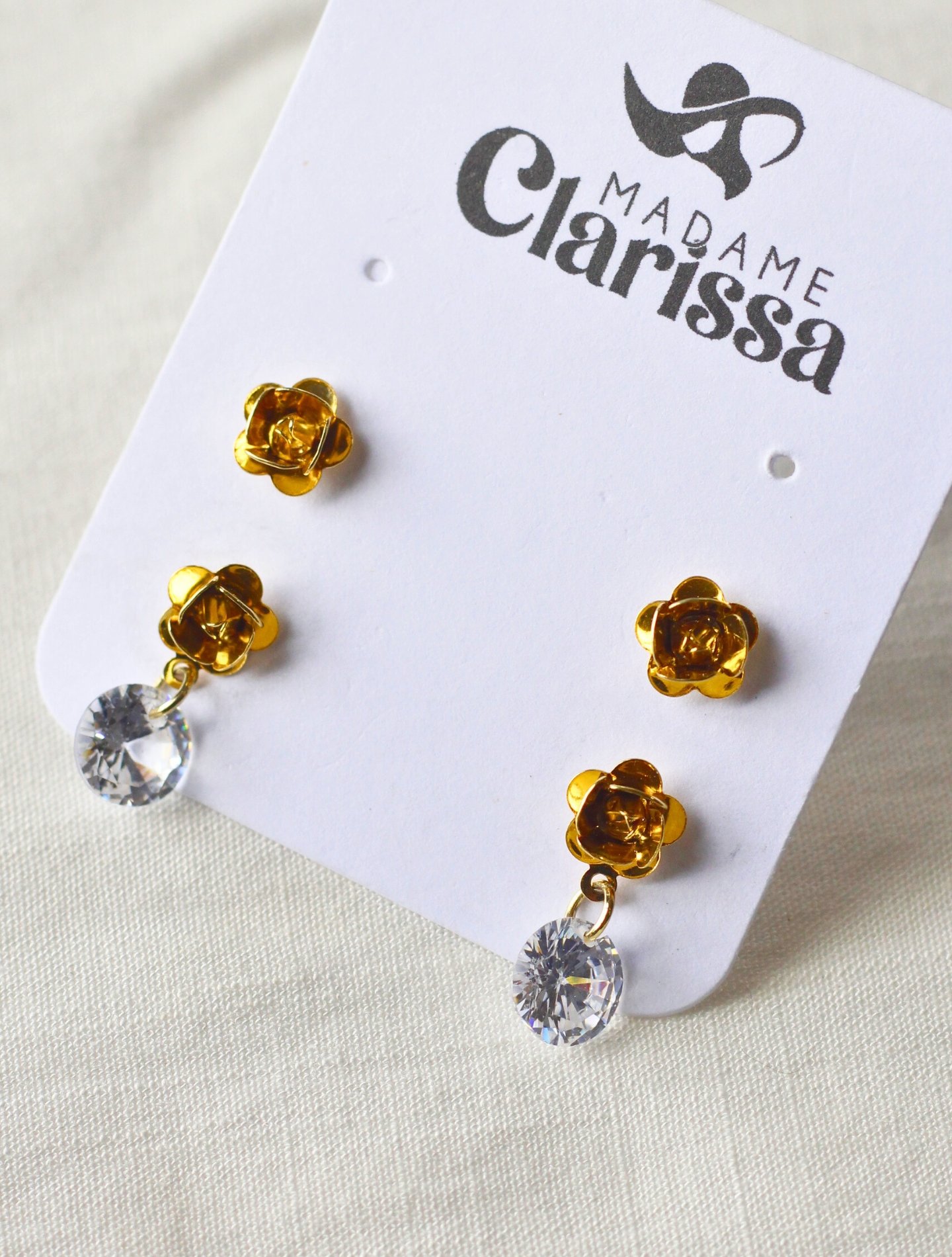 Kit de Brincos Flor com Zircônia banhado a ouro 18K, com pequenas flores e pingentes de zircônia que capturam a luz com sutileza. Hipoalergênicos e leves, perfeitos para criar combinações delicadas entre o primeiro e segundo furo com charme e estilo próprio.